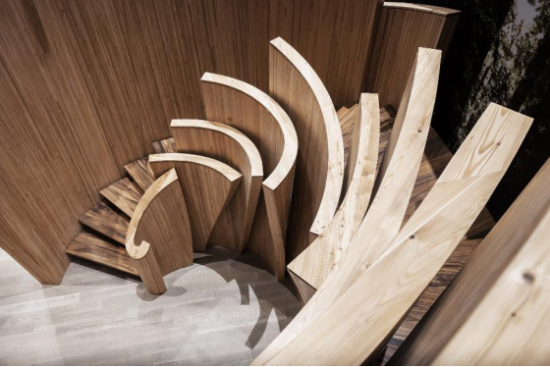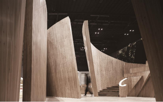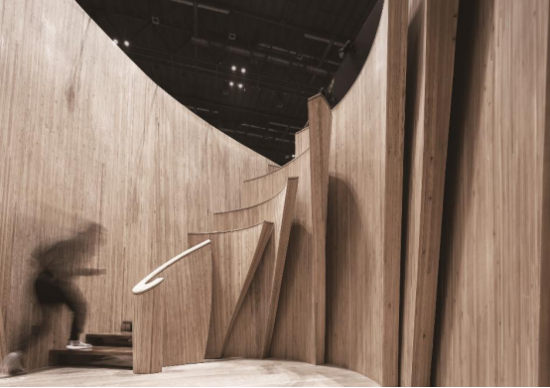 在去年的中國家具博覽會上,杜柏均使用美國紅橡和白橡打造了驚艷的全木制展廳,木材的可塑性被展現(xiàn)得淋漓盡致。