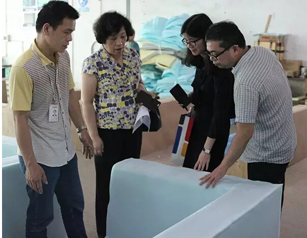 2016年4月27日,深圳市家具行業(yè)協(xié)會副秘書長、檢測中心負責(zé)人劉麗娜女士及一行專業(yè)檢測人員前往格調(diào)家私進行第三輪抽檢測評工作。期間專家人員深入生產(chǎn)車間實地考察,對系列產(chǎn)品的原材料和成品進行隨機抽檢,工作結(jié)束后,評審專家組宣布格調(diào)家私第三輪抽檢產(chǎn)品均符合“綠色優(yōu)品”標準。