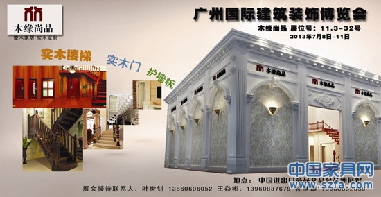 聚勢大建裝,演繹新格局下的“專而全”,一場精彩薈萃的品牌盛宴將于2013年7月8日—11日舉辦,這就是第十五屆中國(廣州)國際建筑裝飾博覽會。作為國內(nèi)涵蓋各類產(chǎn)品最全的專業(yè)性展會,屆時木緣尚品將第四次盛裝亮相。今日的木緣尚品以新傳統(tǒng)木文化為理念,主打原創(chuàng)設(shè)計,讓空間更有價值,充分體現(xiàn)“價值至上”的原則,為消費(fèi)者量身打造,從實木樓梯、木門、衣柜、酒柜、吊頂、木墻板,直至實木家具、沙發(fā)、床等實木家居等高端產(chǎn)品進(jìn)行個性化的詮解釋和演繹,高端奢華的藝術(shù)創(chuàng)造為消費(fèi)提供極致尊榮的美居享受,將優(yōu)雅的藝術(shù)定格在生活中。
