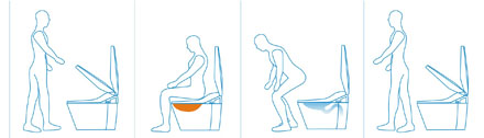 | 當(dāng)您如廁時(shí)按下“臀部”鍵或“女性”鍵時(shí),將自動(dòng)啟用溫水臀部沖洗或女性專用沖洗,沖洗完畢后自動(dòng)沖廁排污,并自動(dòng)啟用烘干程序,烘干后起身離開,10秒后自動(dòng)合蓋并除臭殺菌。整個(gè)如廁過程僅需一個(gè)鍵。方便、快捷、舒適! |