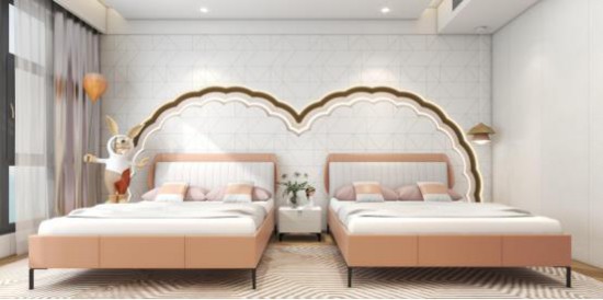 背景墻夢幻靈動,流露出少女氣息,CBD家居·金豹 | J039軟床(定制版)浪漫粉色暖意十足,簡雅的構(gòu)型自在輕盈,重塑空間張力。
