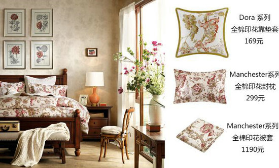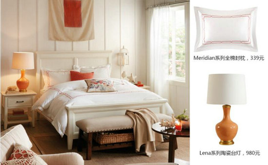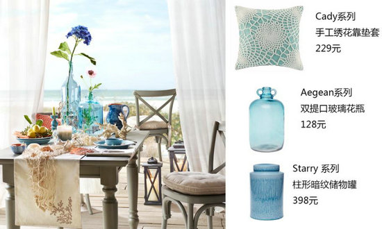 兩個色彩冷暖融匯,重點出現(xiàn)在Harbor House家紡和飾品中。多款美式靠墊、花瓶、毛巾和首飾盒春夏新品,都采用大面積純色,綴以水洗、立體繡花等工藝,凸顯色彩本身的自由與溫柔。在美式床品設(shè)計上,則主要運用珊瑚、??⒎被▓D案,點睛休閑家居搭配。