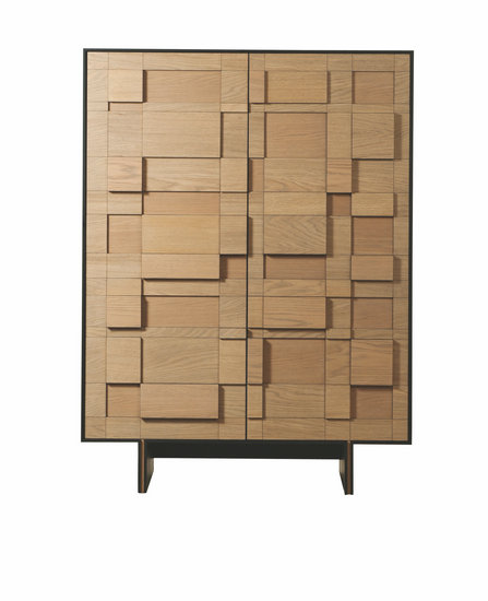 為中國(guó)定制的NAT 59設(shè)為兩扇門(mén),凹凸有秩的木門(mén)結(jié)構(gòu)形成一定的節(jié)奏感,橡木材質(zhì)木柜有歐洲制作,由Erwan Peron設(shè)計(jì)。