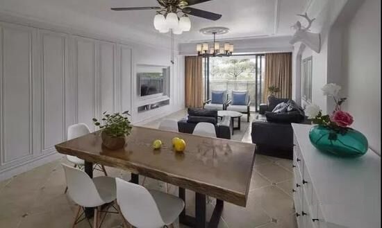 做了造型的白色隱形柜,完全變成背景墻,將餐廳和廚房的雜物隱于無形。