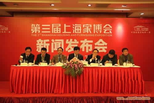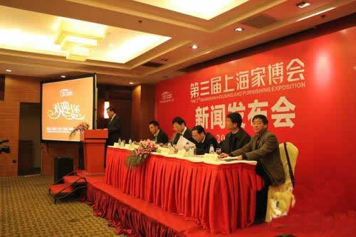 2010年12月7日,“第三屆上海家博會(huì)”新聞發(fā)布會(huì)在光大國際大酒店隆重舉行,上海商務(wù)委貿(mào)促處處長(zhǎng)蔣雪根、上海裝飾裝修行業(yè)協(xié)會(huì)常務(wù)副秘書長(zhǎng)郟祥均、上海家博會(huì)組委會(huì)主任茅萬青、上海市裝飾裝修行業(yè)協(xié)會(huì)材料委員會(huì)秘書長(zhǎng)應(yīng)再揚(yáng)、家博會(huì)承辦單位上海華墨展覽服務(wù)有限公司總經(jīng)理王國平等出席了新聞發(fā)布會(huì)。另有來自上海市前30強(qiáng)知名家裝公司、200多家品牌建材家居企業(yè)、數(shù)十家行業(yè)權(quán)威媒體的300多名代表參加了新聞發(fā)布會(huì)。