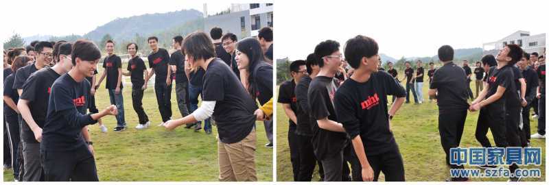 "馬蘭花開"游戲規(guī)則:學員未成一個圈,小跑起來,教練喊出:“馬蘭花開!”,學員們高聲應答:“花開幾朵?”,教練喊出:“花開n朵。”學員們迅速找到臨近的人,湊夠n個人,抱成一團蹲下。不能完成任務的學員會受到懲罰。通過這個游戲,能鍛煉學員的反應力、組織能力,培養(yǎng)他們的團隊精神。