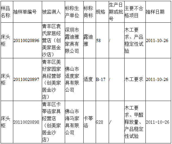 成都2011年4季度木家具監(jiān)督抽查結(jié)果