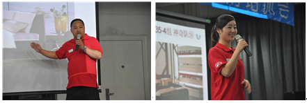產品知識PK賽場上,學員們突破自己,站上了講臺向全場150名“顧客”介紹產品,許多學員剛上臺的時候聲音在戰(zhàn)抖,一度遇到語塞,腦袋空白,在臺下隊友們、領導們及老師的鼓勵之下,他們克服了內心的恐懼,越來越大膽地完成了整個10分鐘的產品解說,最終,8隊的黃翰文同學獲得了最高分,他的解說贏得滿堂彩,他也成為了同學們學習的榜樣。