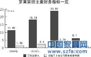 年報(bào)顯示,羅萊家紡2009年實(shí)現(xiàn)營(yíng)業(yè)總收入11.45億元,歸屬于上市公司股東的凈利潤(rùn)約為1.46億元;2010年,其營(yíng)業(yè)總收入達(dá)到18.19億元,同比增長(zhǎng)58.81%,凈利潤(rùn)2.4億元,同比增長(zhǎng)64%;2011年其營(yíng)業(yè)總收入突破23.82億元,同比增30.99%,凈利潤(rùn)3.74億元,同比增55.27%。但從今年一季度起,羅萊家紡初露增長(zhǎng)放緩的端倪,其當(dāng)季營(yíng)業(yè)總收入和凈利潤(rùn)分別為6.1億元和1億元,同比僅分別增長(zhǎng)5.35%和6.33%。