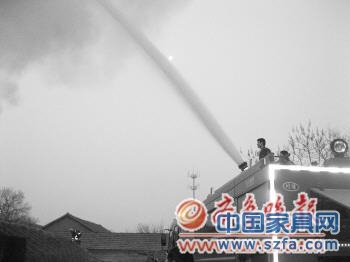 據消防人員描述,事發(fā)時,現場上空彌漫著大量濃煙,整個作坊大院里也被濃煙覆蓋,并不時有火焰從院墻里竄出,火勢最高時甚至能達到3—4米,并長時間處于猛烈燃燒階段。據悉,由于著火的主要是木頭等易燃品,再加上風力較大,大火借著大風迅速蔓延,嚴重危及毗鄰建筑和周圍人員的生命財產安全。為了控制火勢,消防官兵分為兩組,一組爬上周圍建筑,從上方射水滅火,另一組從正面射水滅火,兩路夾擊扼殺火勢。