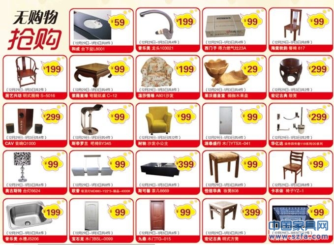 活動內容:活動期間,顧客無需購物憑本人身份證及排位號即可參加當日“無購物搶購”活動,顧客依次排隊抽取獎箱內的白球和黃球,如顧客抽中黃球方可選取搶購商品,搶購商品僅在2012年12月29日-2013年1月3日限量銷售。