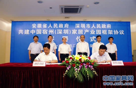 9、2012年8月22日,安徽省人民政府副省長(zhǎng)黃海嵩與深圳市人民政府副市長(zhǎng)唐杰在深圳市民中心簽署共建“中國(guó)宿州·深圳家居產(chǎn)業(yè)園框架協(xié)議”。將中國(guó)宿州·深圳家居產(chǎn)業(yè)園的建設(shè)提升到了更高的層次。