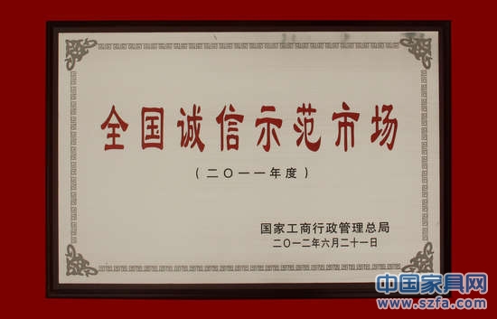 順屹家居經(jīng)過全體員工及商戶的誠信經(jīng)營,以及不驕不躁的共同奮斗,2012年底順屹家居又獲得新的榮譽,被評為“2011年度全國誠信示范市場”。