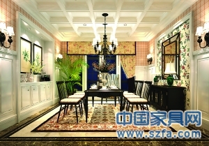 美式家具用材多為實木,涂飾常采取做舊處理。美式家居非常重視裝飾,如風鈴草、麥束和甕形裝飾等。