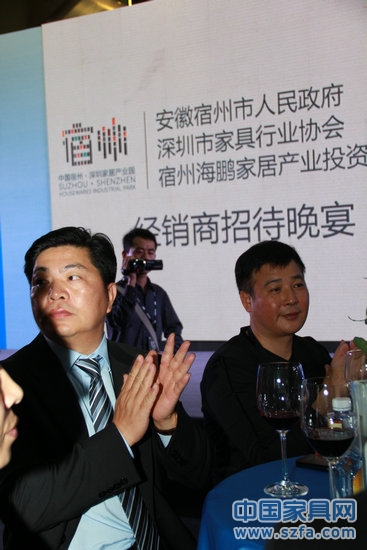 2013年3月19日晚,“有一種生活方式叫意大利”暨宿州·深圳家居產(chǎn)業(yè)園客戶見面會在深圳國際家具展5號館隆重舉行。宿州市人民政府副市長羅宏、中國宿州·深圳家居產(chǎn)業(yè)園總裁唐俊東、安徽省家具協(xié)會理事長趙卓華、徽商銀行宿州市分行行長蔡春、安徽萬家美居董事長萬平安、深圳市家具行業(yè)協(xié)會會長、深圳左右家私有限公司董事長黃華坤、深圳市家具行業(yè)協(xié)會執(zhí)行會長、深圳仁豪家具有限公司董事長尤國忠、深圳市家具行業(yè)協(xié)會執(zhí)行會長侯克鵬、香港興利集團執(zhí)行董事黃偉業(yè)、深圳家具研究開發(fā)院院長許柏鳴、香港興利集團董事長宋啟慶先生以及宿州政府代表團和安徽各地經(jīng)銷商等共同參加了此次見面會。