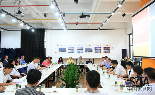 王穗明一行首先參觀了深圳家具行業(yè)協(xié)會的辦公大樓,詳細(xì)了解了協(xié)會的規(guī)劃、展會、教育、研發(fā)、傳媒、檢測的六大模塊。座談會上,深圳市家具行業(yè)協(xié)會執(zhí)行會長侯克鵬作為委員代表首先發(fā)言,他指出,經(jīng)過10年的努力,深圳家具行業(yè)現(xiàn)已成功轉(zhuǎn)型為設(shè)計和創(chuàng)意產(chǎn)業(yè)。如今,家具行業(yè)協(xié)會已和坪山新區(qū)政府達(dá)成協(xié)議,將100家深圳品牌企業(yè)的總部、設(shè)計、研發(fā)、營銷和辦公基地集中坪山,希望能取得政府的政策支持和土地資源支持創(chuàng)建總部基地和創(chuàng)意基地;加快進(jìn)度建立第二個會展中心以更好的搭建深圳的設(shè)計和創(chuàng)意平臺;扶持和建立深圳的設(shè)計品牌和質(zhì)量品質(zhì)品牌。