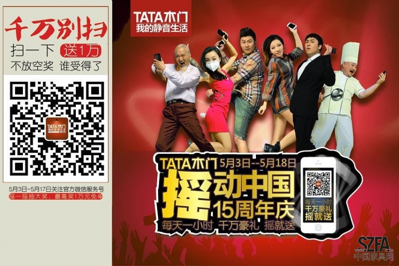 為答謝多年來消費(fèi)者對(duì)品牌的支持與信賴,TATA木門在全國范圍內(nèi)開展“TATA15周年慶,搖動(dòng)中國”感恩回饋活動(dòng)。