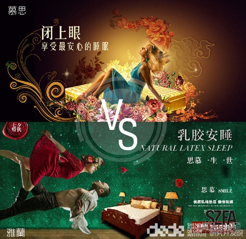 (上圖為雅蘭和慕思的床墊小幅平面廣告,雅蘭某乳膠床墊甚至被命名為“思慕”)