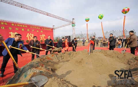 市委副書記龔定榮,武漢市化工區(qū)管委會(huì)副主任錢方信,湖北省家具協(xié)會(huì)會(huì)長(zhǎng)秦志江,市政府副市長(zhǎng)李江鴻,總口農(nóng)場(chǎng)黨委書記饒開洲,湖北省家具協(xié)會(huì)秘書長(zhǎng)謝文橋,湖北板式家具協(xié)會(huì)秘書長(zhǎng)顧祥利,四川省質(zhì)量協(xié)會(huì)秘書長(zhǎng)蔣安平,華中家具產(chǎn)業(yè)園負(fù)責(zé)人胡曉寒,以及5家武漢家具企業(yè)董事長(zhǎng)等出席奠基儀式,并為企業(yè)入駐奠基培土。總口農(nóng)場(chǎng)場(chǎng)長(zhǎng)王明耀主持奠基儀式。