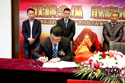 新年伊始、萬象更新。2015年2月2日下午,上海展辰涂料有限公司與三大合營公司正式舉行簽約儀式。董事長陳冰,輪值總裁劉順、輪值總裁孫金平等領(lǐng)導(dǎo)攜集團(tuán)中心各部門負(fù)責(zé)人及上海展辰業(yè)務(wù)一部全體經(jīng)銷商齊聚一堂,共襄盛舉。
