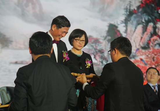 2016年3月17日對(duì)陳燕木來(lái)說(shuō)是一個(gè)特別的夜晚。在運(yùn)時(shí)通歷史的展示下,晚宴拉開序幕。陳燕木在回憶中感恩各界,并正式宣布:“今年我已經(jīng)75歲了,我也要退休了,運(yùn)時(shí)通正式交給我的兩個(gè)兒子,陳冠宇與陳冠翰。”