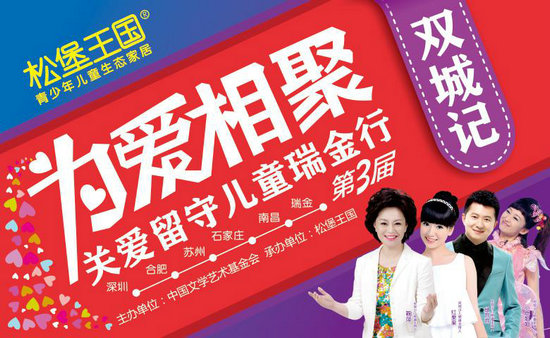 據(jù)悉,“為愛相聚•雙城記”關(guān)愛留守兒童瑞金公益行愛心小天使選拔已在深圳、合肥、南昌、蘇州、石家莊五個城市如期舉行,參賽的小朋友用他們獨特的方式傳達著對留守兒童的愛。此次公益活動吸引更多愛心家庭的加入以及社會各界愛心人士的關(guān)注,并為留守兒童貢獻自己的一份力量。所有捐贈物資將于8月9日由中國文學(xué)藝術(shù)基金會、愛心大使、愛心天使團、松堡王國帶給江西瑞金的留守兒童。