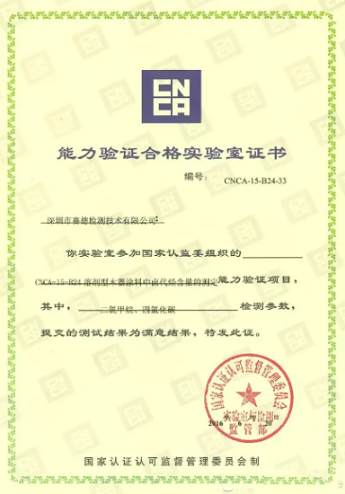 能力驗證與實驗室內(nèi)部的比對一樣,是實驗室進行檢測質(zhì)量控制的手段,但前者比后者的要求更嚴謹,獲得滿意結(jié)果的難度也更大。賽德檢測在過去的半年,除了“皮革中甲醛含量的測定”能力驗證取得滿意結(jié)果,還在“膠粘劑中苯、甲苯、二甲苯含量的測定”測量審核、CNCA-15-A08“涂料中苯、甲苯、二甲苯、乙苯含量的測定”能力驗證項目、CNCA-15-B24“溶劑型木器涂料中鹵代烴含量的測定”能力驗證項目均取得了滿意的測試結(jié)果。作為家具行業(yè)的公共檢測技術(shù)服務(wù)平臺,賽德檢測通過一系列的內(nèi)部比對,外部驗證,來不斷完善實驗室的運行體系,提升檢測質(zhì)量,力求為行業(yè)提供科學、準確的數(shù)據(jù)。