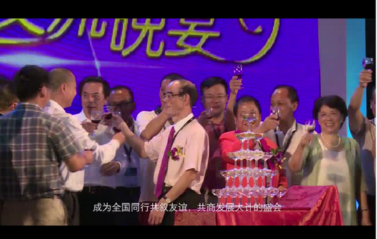 ▲晚會現(xiàn)場 播放的企業(yè)祝福合輯,講述與廣東家紡協(xié)會共同成長的20年