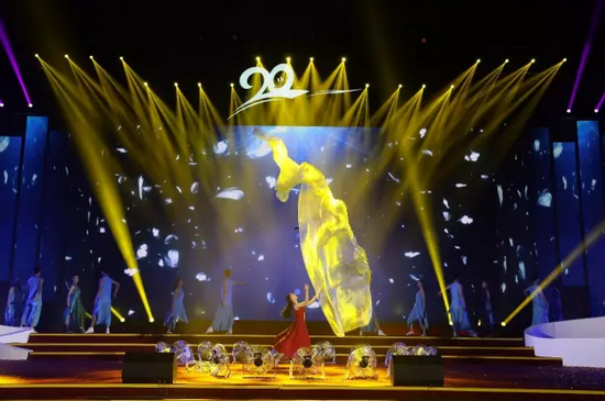 ▲晚會現(xiàn)場 播放《跨越二十載,再創(chuàng)新時代》20周年回顧大片
