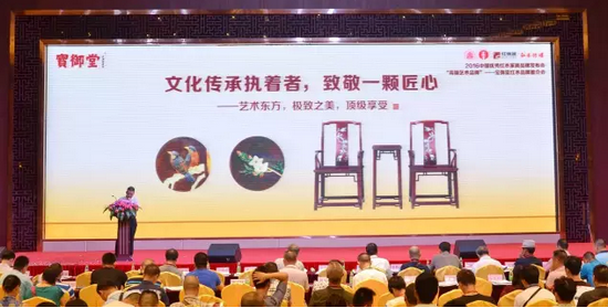 在發(fā)布會(huì)上,紅博城、集古韻今、紅寶軒紅木、寶御堂紅木、軒禾殿紅木、憶古軒、戴為紅木、匠王紅木、長(zhǎng)豐紅木、順泰軒紅木、雍博堂紅木、瑞昇家居等12家品牌圍繞“品牌推介、新品發(fā)布,新模式、新政策”先后全面展示了紅木家具行業(yè)的前沿力量和先進(jìn)思想,完成了一場(chǎng)實(shí)力展示。