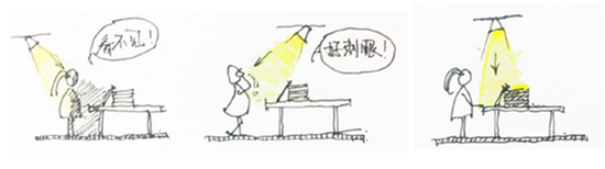 圖:燈具的安裝位置和打光方式不對,會由于眩光或者陰影緣故帶來反效果。