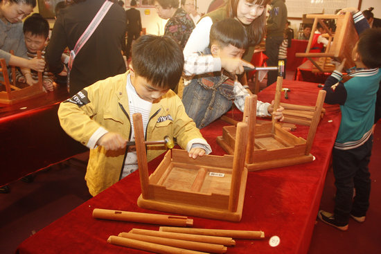 19日下午,創(chuàng)意12月——友聯(lián)為家少兒紅木木工大賽歡樂(lè)開(kāi)展,來(lái)自深圳及周邊城市的幾十組家庭參加了比賽。據(jù)悉,此賽事由龍華新區(qū)文產(chǎn)辦、文化創(chuàng)意十二月組委會(huì)主辦,深圳紅木文化藝術(shù)協(xié)會(huì)、香港祥利集團(tuán)、深圳紅木家具博物館協(xié)辦,旨在培養(yǎng)少兒對(duì)中國(guó)傳統(tǒng)家具的熱愛(ài)、提升小朋友的動(dòng)手能力,增進(jìn)孩子與家長(zhǎng)的互動(dòng)。