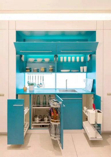 “隱身術(shù)”可謂海福樂(lè)百變空間的秘密武器。18平米的戶型中,客廳空間也能寬松自如,電動(dòng)升降系統(tǒng)輕松將電視隱藏在柜體中,音響系統(tǒng)可根據(jù)需求隱身在家具、墻體或柜體中,不同形式和材質(zhì)的推拉門在解決空間切割問(wèn)題的同時(shí),拉伸間不占用任何空間……