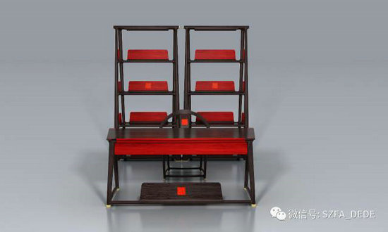 漢樂(lè)府書(shū)房取漢代常用的紅、黑兩色,色彩明快,對(duì)比強(qiáng)烈。配以漢風(fēng)印章,平直方正,風(fēng)格雄渾典重,古樸大氣。其立面一改傳統(tǒng)方方正正的造型,全部設(shè)計(jì)為梯形,這種不規(guī)則的形態(tài),就像初創(chuàng)時(shí)期的漢朝,未成規(guī)矩但生氣勃勃。漢樂(lè)府書(shū)房承載著豐富的傳統(tǒng)文化以及氣勢(shì)磅礴的大國(guó)精神,也代表了祥利人在中國(guó)紅木家具設(shè)計(jì)史上的努力追求和不懈探索——他們有著大漢王朝一樣不斷突破的初創(chuàng)精神。