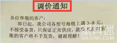 漲價告急!部分海綿廠發(fā)布調(diào)價通知