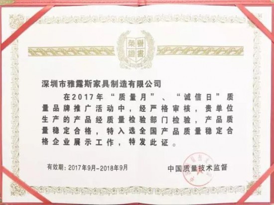 軟床和床墊屬于私密空間的親密接觸用品,其品質(zhì)的好壞直接影響到使用者的健康。一直以來(lái),雅露斯產(chǎn)品嚴(yán)格按照國(guó)際和國(guó)家標(biāo)準(zhǔn)生產(chǎn)制造,產(chǎn)品質(zhì)量和環(huán)保都達(dá)到國(guó)際標(biāo)準(zhǔn),確保每位消費(fèi)者用得放心、舒心、開(kāi)心。同時(shí),雅露斯也自戴“緊箍咒”邀請(qǐng)廣東保健協(xié)會(huì)和深圳家具協(xié)會(huì)做為產(chǎn)品質(zhì)量自檢監(jiān)督單位,每年不定時(shí)對(duì)雅露斯產(chǎn)品進(jìn)行10次以上隨機(jī)抽檢,并對(duì)產(chǎn)品設(shè)計(jì)、生產(chǎn)等制造環(huán)節(jié)進(jìn)行現(xiàn)場(chǎng)指導(dǎo),確保產(chǎn)品的100%合格。雅露斯軟床和床墊多年獲得“質(zhì)量環(huán)保金獎(jiǎng)”雙科狀元,是對(duì)雅露斯苛刻的產(chǎn)品質(zhì)量“自律自查制度”的高度認(rèn)可與肯定。