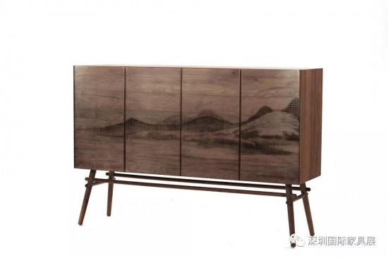 采菊東籬下,悠然見南山。一幅點(diǎn)陣激光雕刻的水墨山水,讓具象的情景變得模糊,唯有退后一步,才得看見風(fēng)景所在,品得出其中韻味。高挑的腿部設(shè)計(jì),將柜體托離地面,使其看來輕盈靈動(dòng),柜門上的點(diǎn)陣山水也似乎在煙雨中生動(dòng)鮮活了起來,仿佛一陣清風(fēng)拂過。