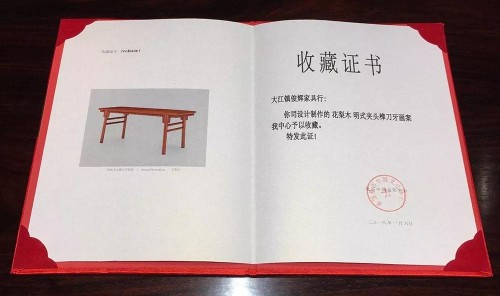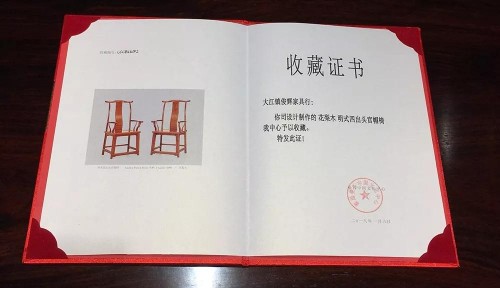 當(dāng)天,曼谷中國文化中心主任藍(lán)素紅參贊,副主任張波先生還分別向大江俊輝紅木家具董事長謝俊有先生、總經(jīng)理周海霞女士頒發(fā)了收藏證書,意味著大江俊輝展出的紅木家具被曼谷中國文化中心永久收藏,紅木家具成為中泰文化友好的鮮明印記。