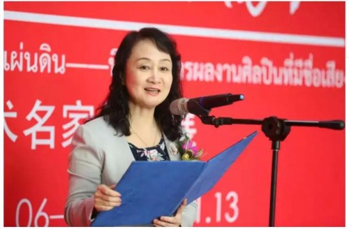 ▲ 中國駐泰國大使館文化參贊、曼谷中國文化中心主任藍(lán)素紅女士致辭:對本次展覽給予極高評價(jià)