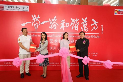 在“一帶一路”倡議的框架下,2018年1月6日,曼谷中國文化中心和廣東省藝術(shù)品行業(yè)協(xié)會(huì)主辦,大江俊輝紅木家具協(xié)辦,清遠(yuǎn)市國創(chuàng)文化藝術(shù)發(fā)展有限公司和廣州市校企協(xié)同創(chuàng)新會(huì)承辦的“一帶一路·和諧萬方:藝術(shù)名家作品展”在泰國·曼谷中國文化中心隆重開幕。