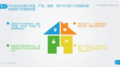 通過(guò)分析家居家裝產(chǎn)業(yè)現(xiàn)狀以及消費(fèi)者特征,億歐智庫(kù)認(rèn)為,未來(lái)幾年平臺(tái)型家居家裝企業(yè)更容易在競(jìng)爭(zhēng)中勝出,但平臺(tái)型企業(yè)與垂直型企業(yè)不是競(jìng)爭(zhēng)關(guān)系,而是魚水共存關(guān)系。家居家裝平臺(tái)型企業(yè),可以從流量、產(chǎn)品、服務(wù)、用戶行為四個(gè)方面推動(dòng)家居家裝產(chǎn)業(yè)健康發(fā)展。