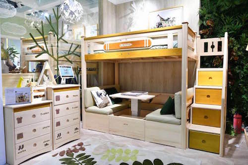 滑板轉角雙層床,汲取滑板的輪廓元素,上下床以轉角的形式為組合方式,可進行上下雙層床與轉角雙層床及拆分上下床三種模式的自由切換,且可搭配增加儲物層架的個性衣柜及節(jié)省空間的簡潔實用學習桌,給予孩子多變的特殊體驗。除此之外還有更多高顏值、高性價比的系列產(chǎn)品及套房神秘現(xiàn)身,屆時將再次掀起兒童家具市場新風潮。