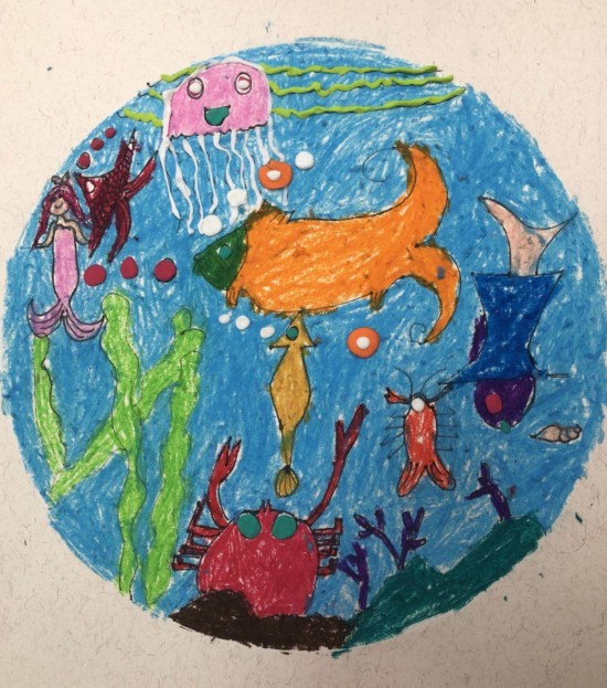 第二堂課的創(chuàng)作主題是“夢幻海洋”,支教老師李凌鼓勵孩子們放飛想象,描繪他們眼中的大海,培養(yǎng)孩子們愛護(hù)海洋,保護(hù)動物的觀念。