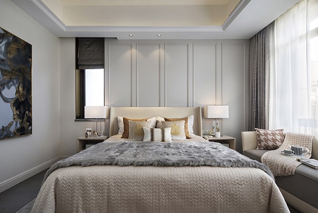 主臥設(shè)計(jì)溫馨柔和,簡潔的空間承接著煦和的自然光線,清淺的米色與白色交織,如絮般的溫柔,如和風(fēng)般的輕軟,似乎具有撫慰人心的治愈效果。好的設(shè)計(jì)正在于細(xì)致的體驗(yàn)感受,而不只流于精彩視覺效果。