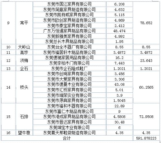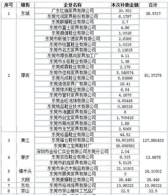 附件:廣東紅旗家具有限公司等58家家具及制鞋企業(yè)VOCs整治財政補助資金明細表