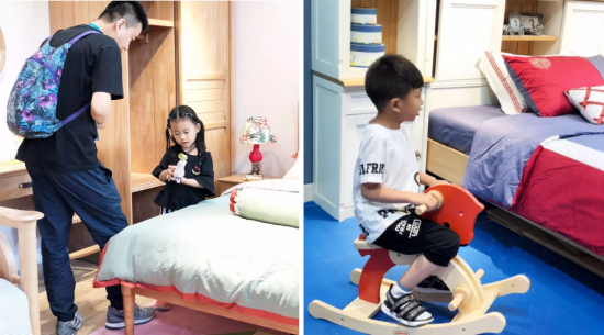 在北歐木語,抽屜內置分區(qū)設計、動物形狀的桌椅設計、生活元素的柜面設計、床頭可更換組合設計、多邊形的組合書桌設計等走心設計,將人與自然的奇思妙想發(fā)揮無盡,讓每個孩子都能在這里發(fā)現(xiàn)快樂。顏色、尺寸、功能的自由選擇,也成為一大亮點。