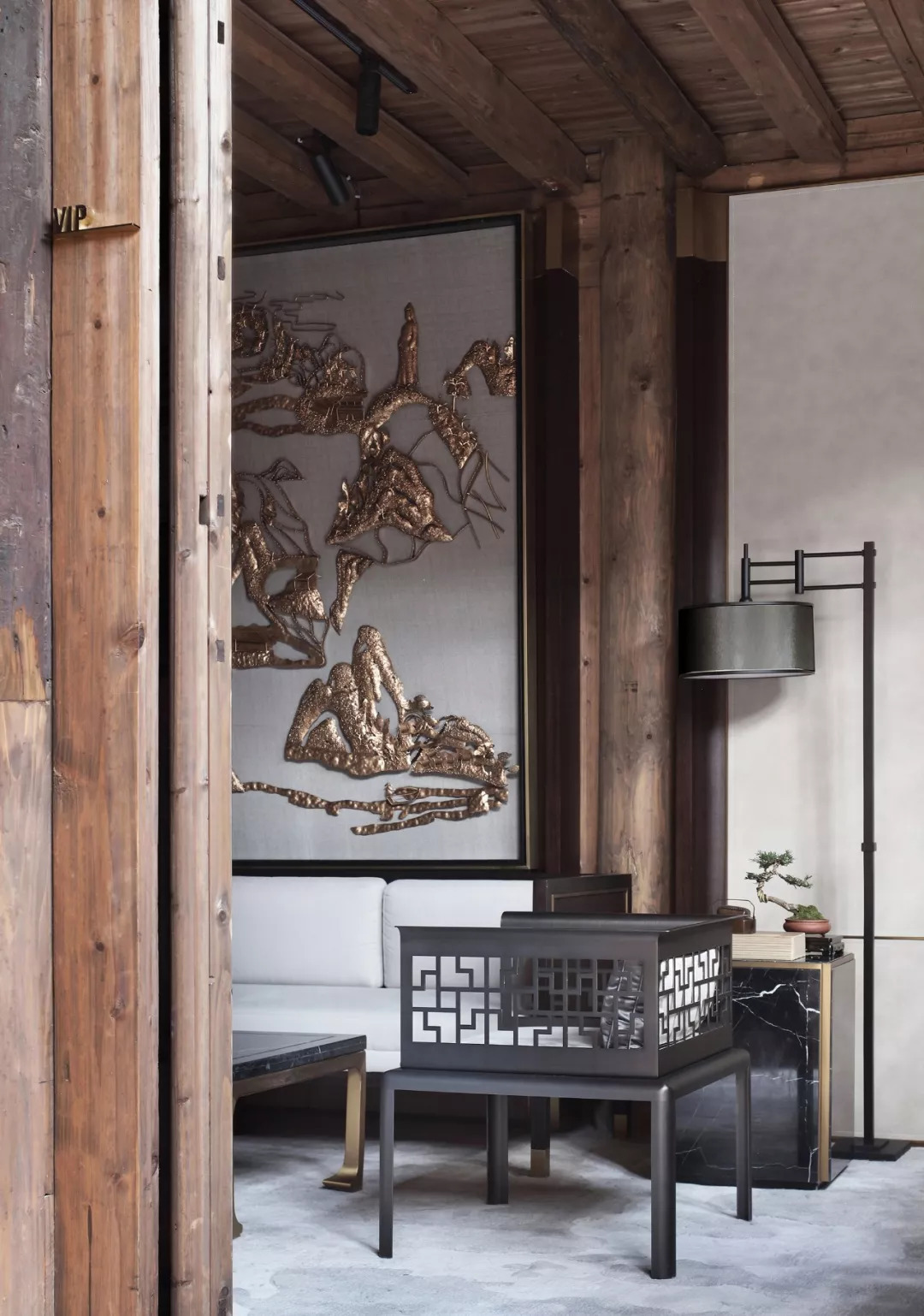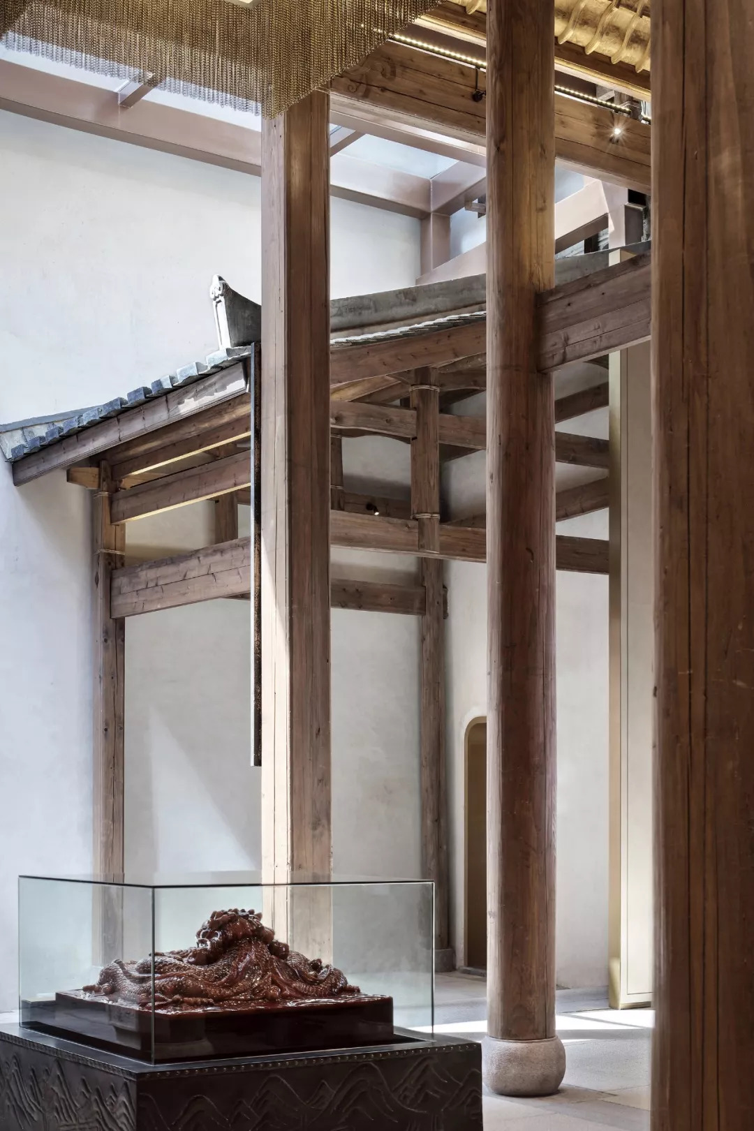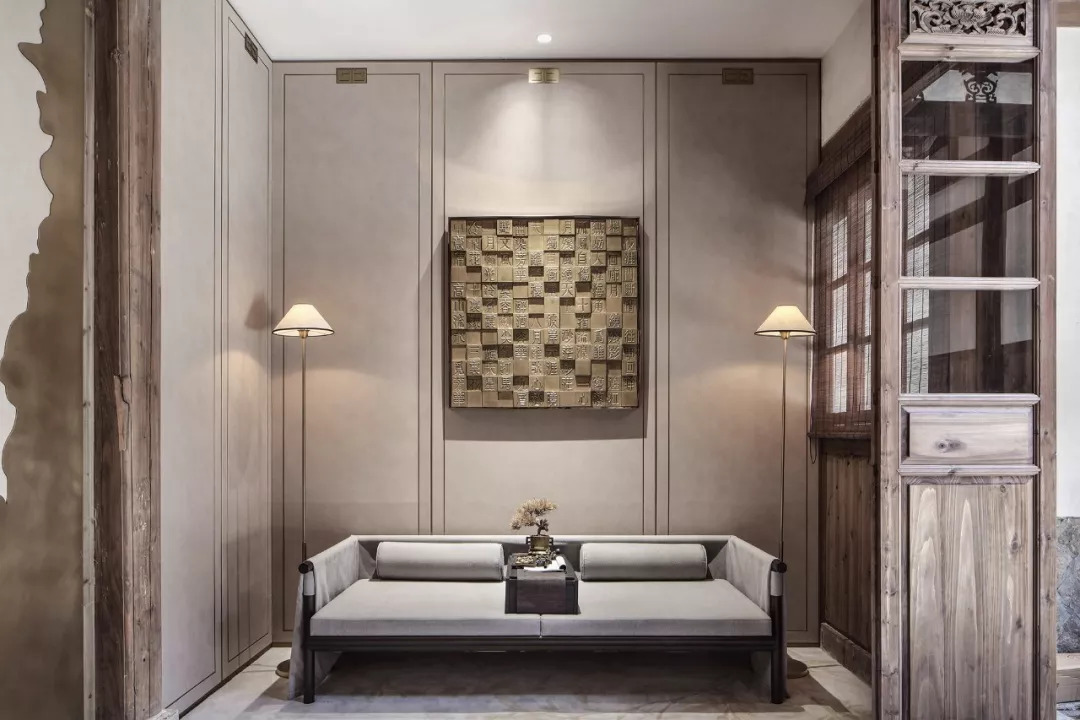歷史文物古建的木制架構,古樸不乏清雅的木色,因為浸潤了歲月光陰,更顯溫潤親切。設計巧妙地讓古舊的木建筑元素自然嵌合進空間,這些老而不頹的木頭以極具藝術氣息的形態(tài)豐盈著空間的精神界域,在淡雅安然的背景映襯之下,煥發(fā)出嶄新的生命活力。