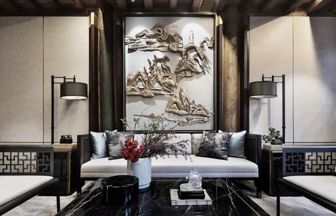 清雅的韻致散逸在空間的各個角落,各式古意盎然的藝術小品將空間的人文氣質烘托盡出,遒勁的蒼枝,山水的抽象形態(tài),抒寫著空間別具一格的東方美學。