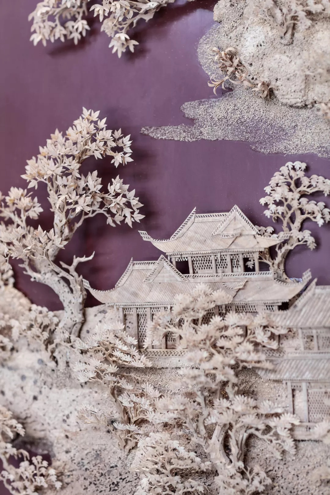 福州傳統(tǒng)軟木雕,作為中國傳統(tǒng)工藝三寶之一,被設計師以別開生面的手法運用于空間各處,錯落有致的木刻不著人工之色,呈現(xiàn)出樸實無華、渾然天成的風貌,而精刻細鏤的浮雕立體造型,又讓其倍顯典雅別致,工藝美、立體美、意境美及材質美在此交相薈萃,讓人目不暇接。這塊巨型軟木雕由軟木大師陳君錕創(chuàng)作,耗時六個月。
