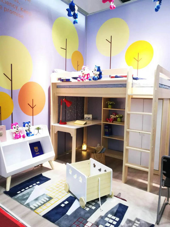 此外,展會還陳列了一年以來最受歡迎的“ Kids Treehouse cabin bed”。一個造型如同“房子屋”的套房,作為升級款亮相,可見其設計新穎、不落俗套。床側(cè)特設加高護欄,頂部木質(zhì)加高帳篷,如同孩子自己的小房子,給孩子更多的貼心和關愛。